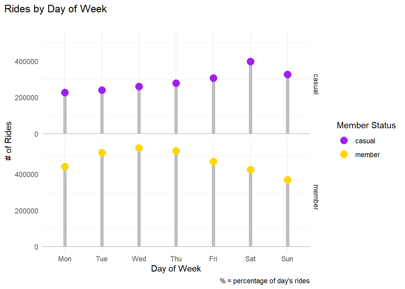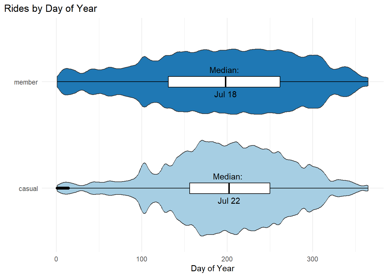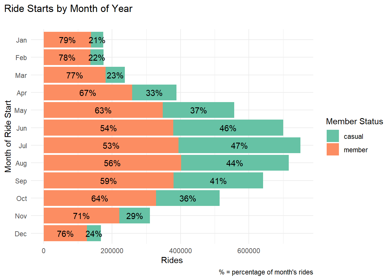 - Member rides are a bit more spread across the year
