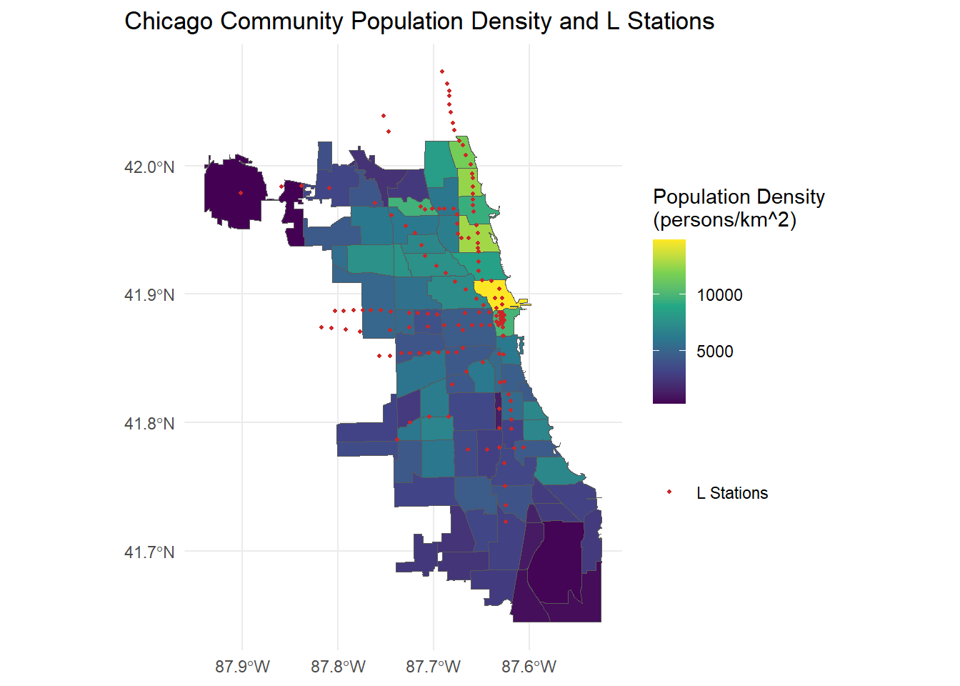 - Locations of Chicago’s local rail transit system, the “L”