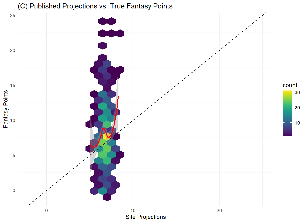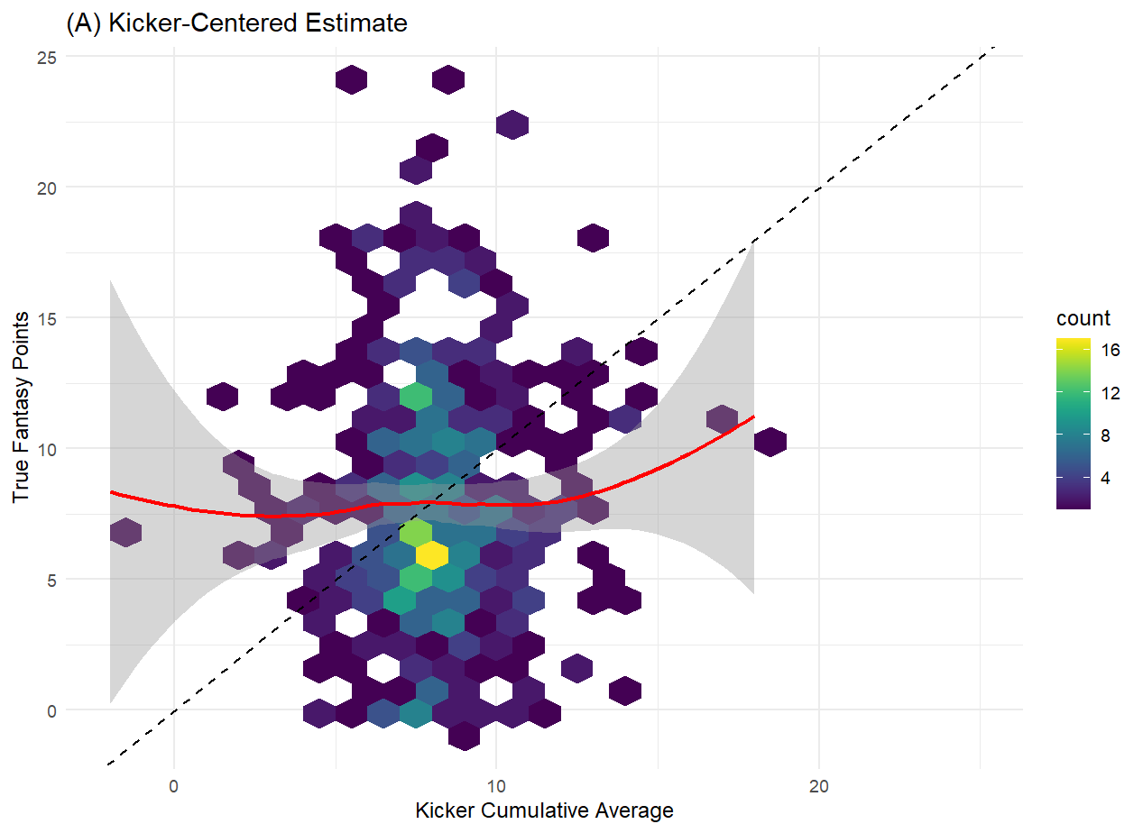 While they say that “necessity is the mother of invention,” frustration is surely a paternal grandfather. And as a long-time fantasy football participant, I’d say one of its most frustrating aspects is seeing your team’s kicker perform poorly, even when the offense they’re on might be scoring well. It’s a universal experience and well understood that kicker scoring is considered so unpredictable, most outlets advocate not even drafting one for your team and just picking one you feel best about on a week-to-week basis. Sites do their best to provide projections to help you select, but exactly how well do those perform?
